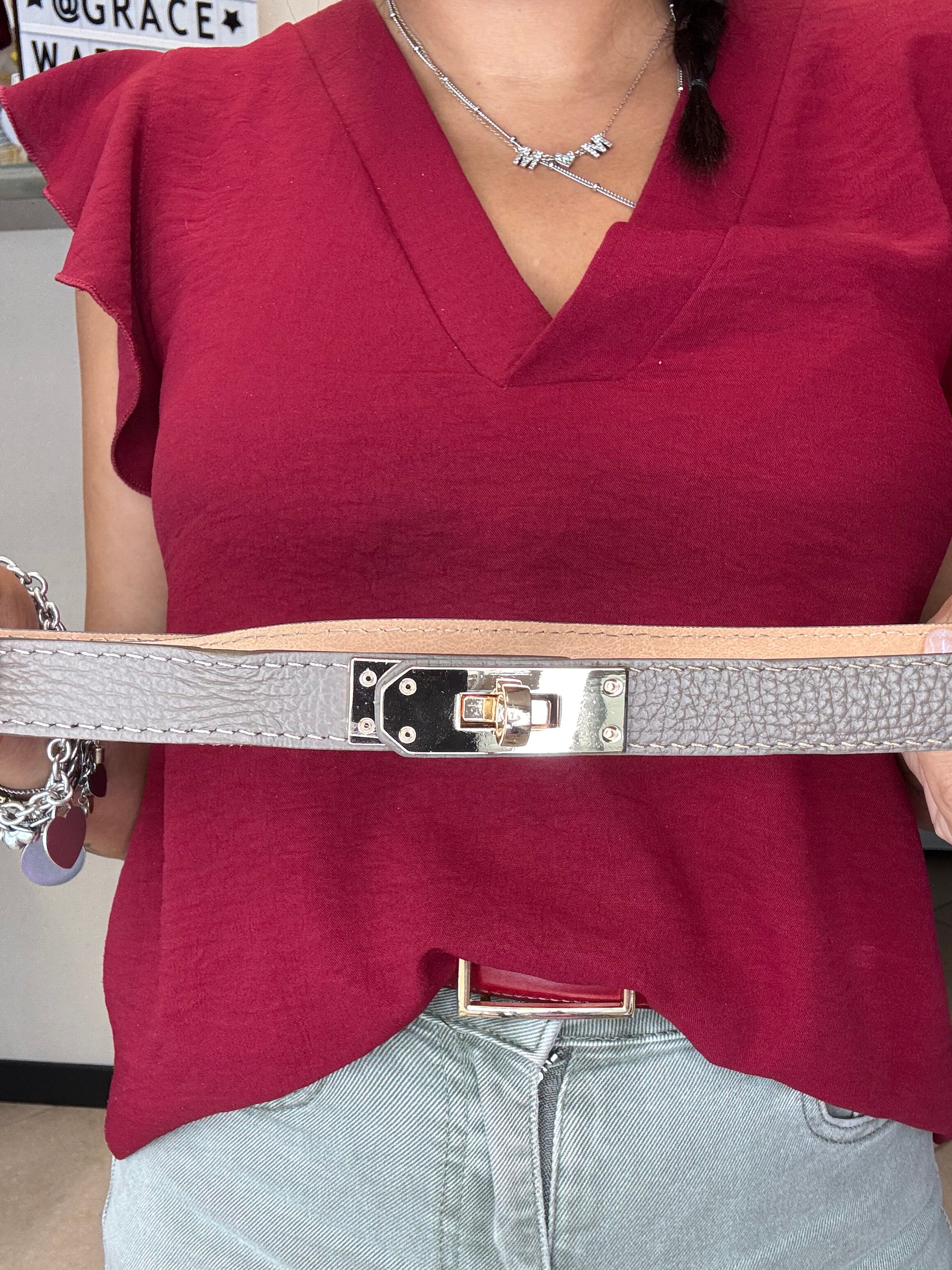 Cintura taglia unica regolabile , in vera pelle , disponibile in varie colorazioni , sia in pelle che in tessuto scamosciato.