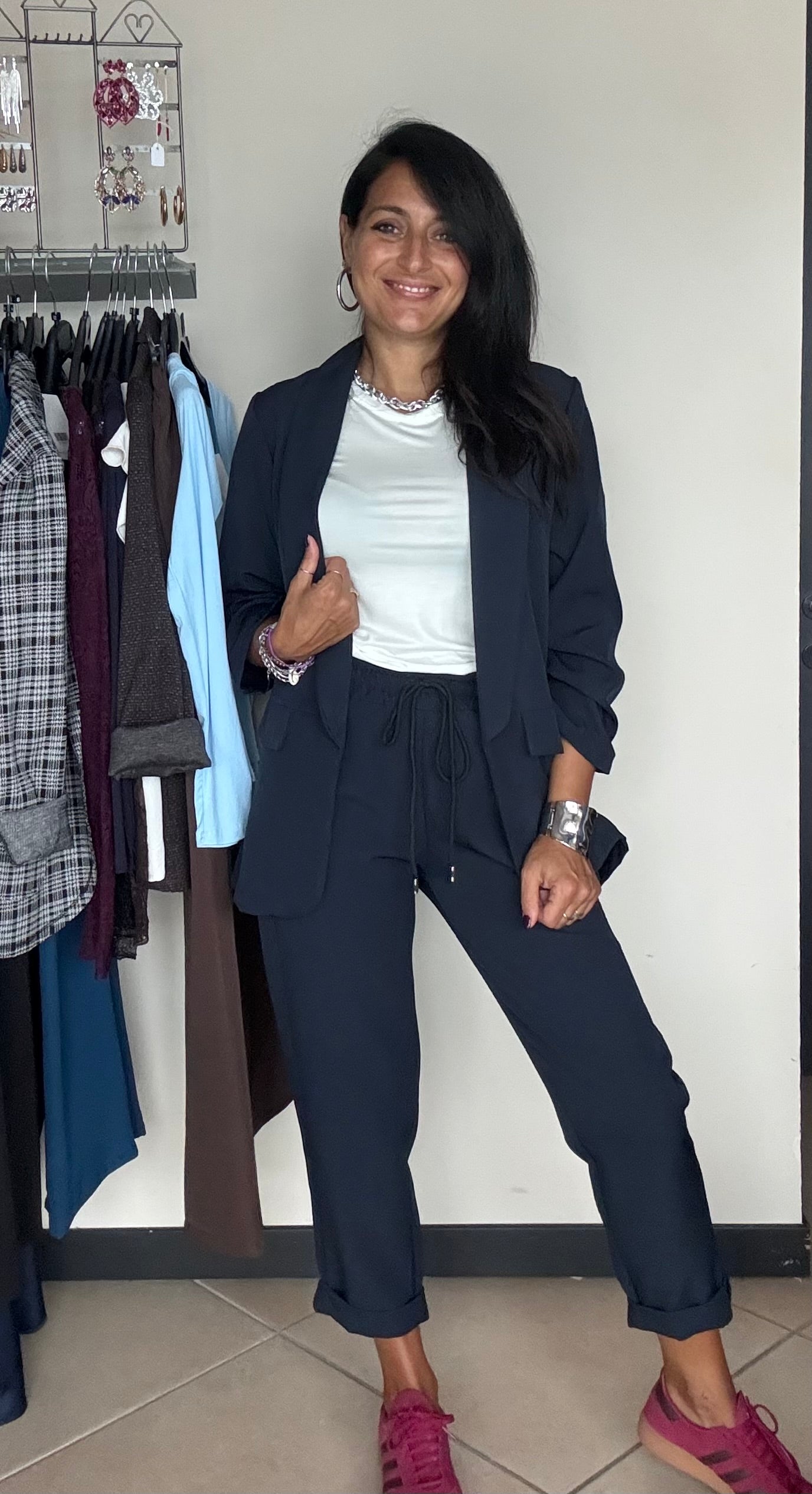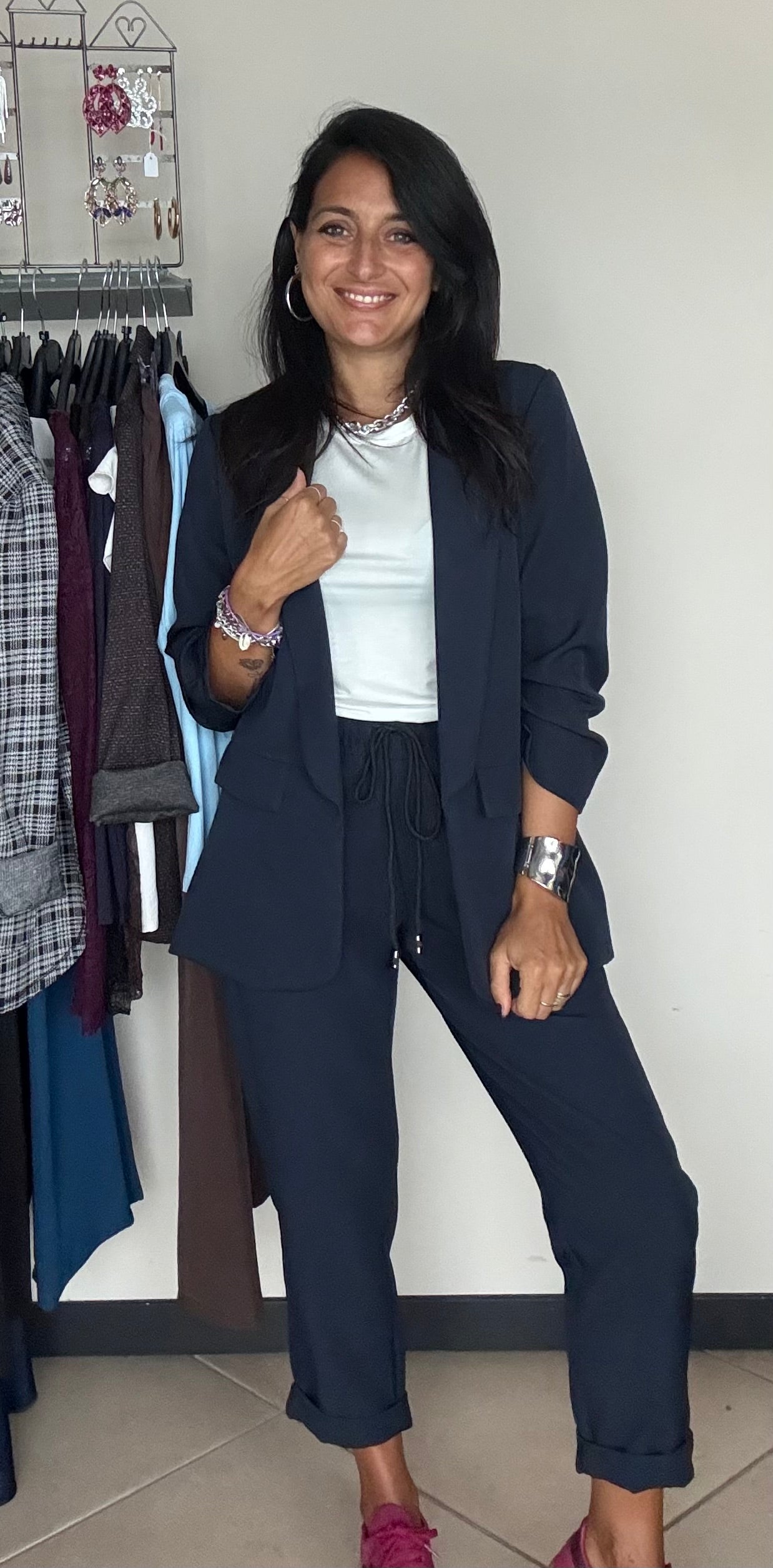 Completo composto da Blazer e pantalone , taglia unica , pantalone con elastico in vita , veste fino ad una 46.