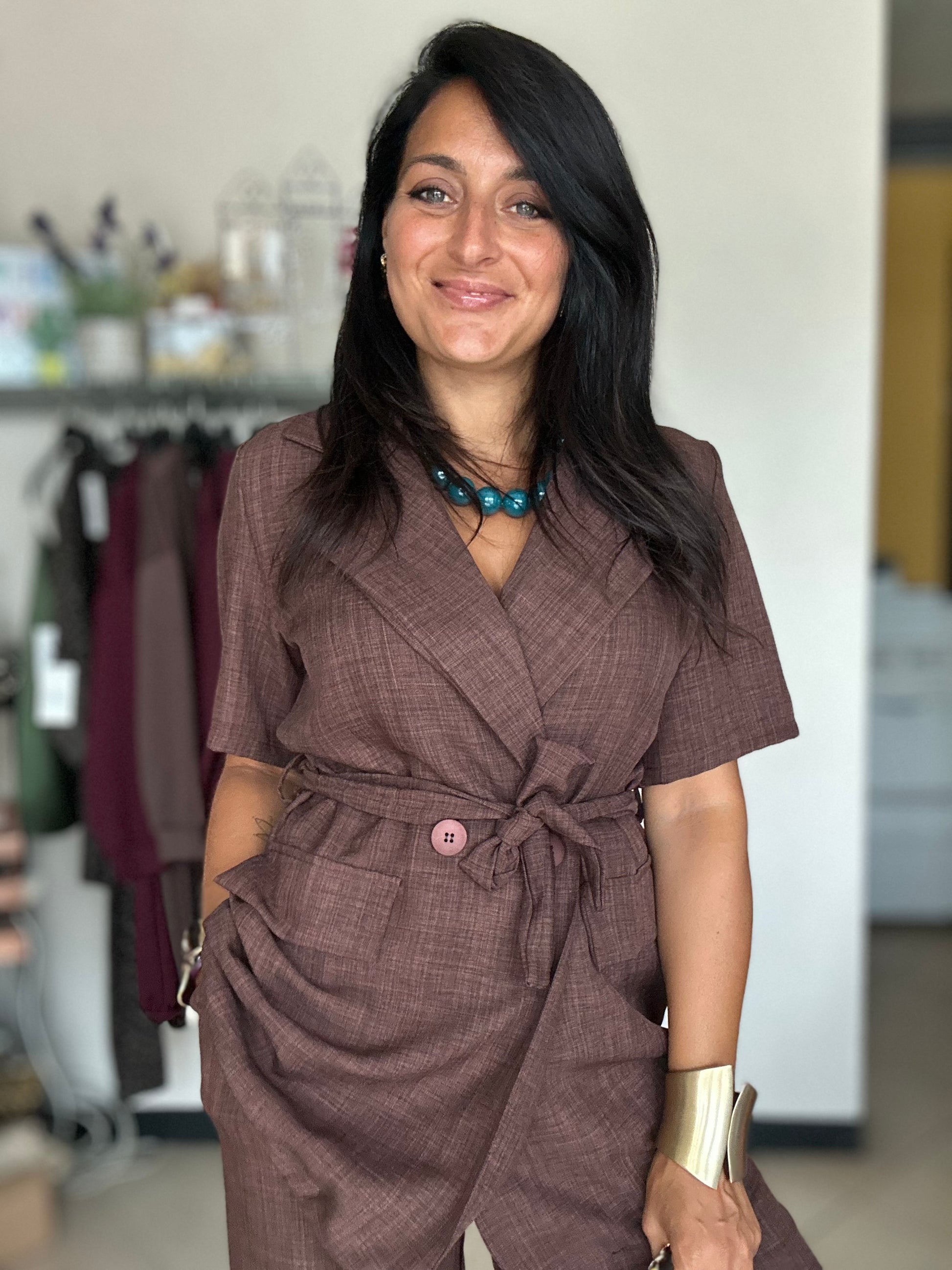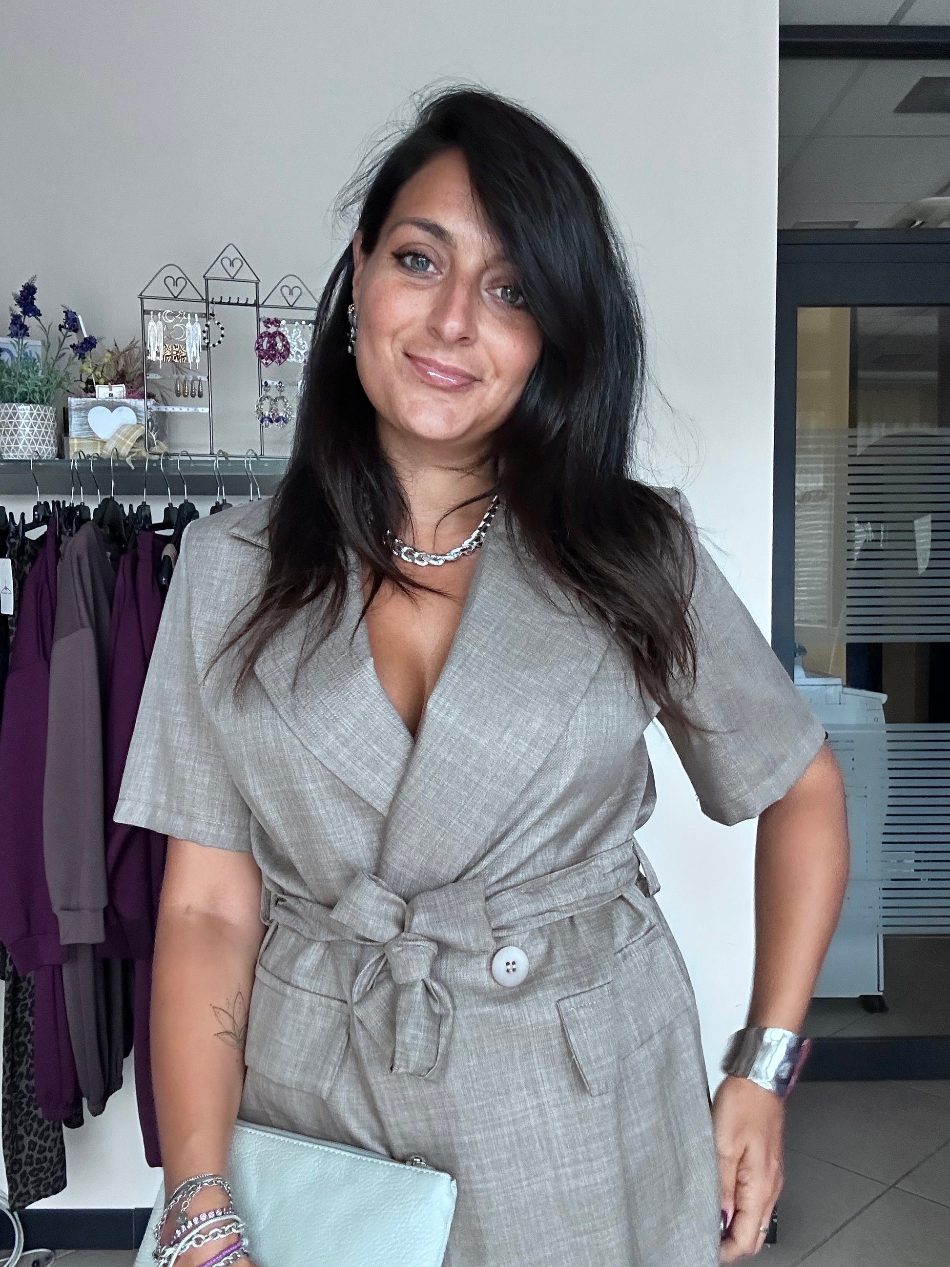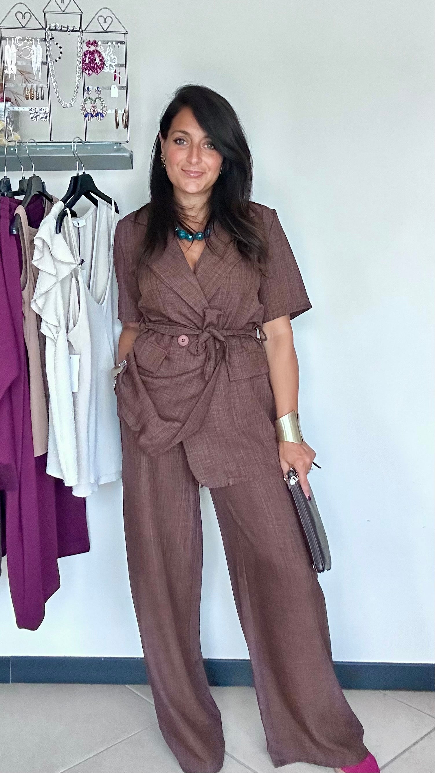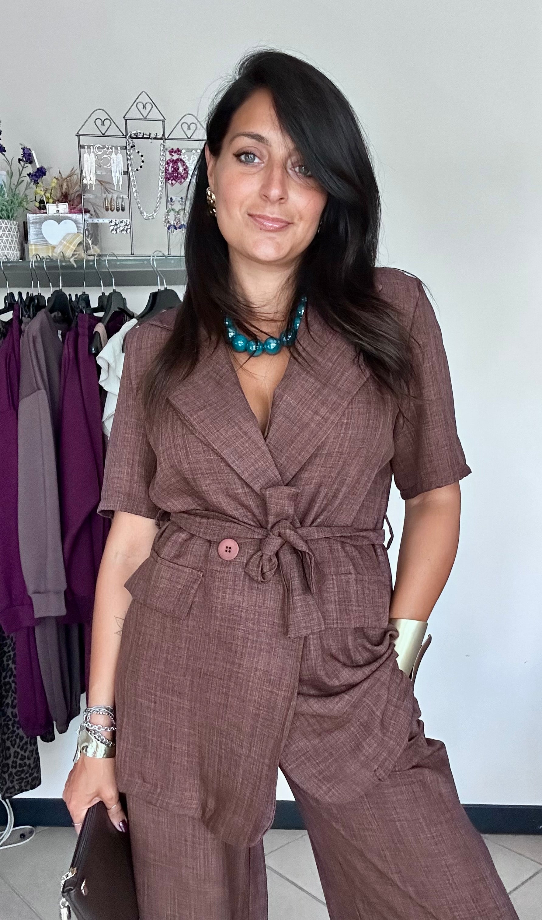 Completo composto da giacca e pantalone con elastico in vita .