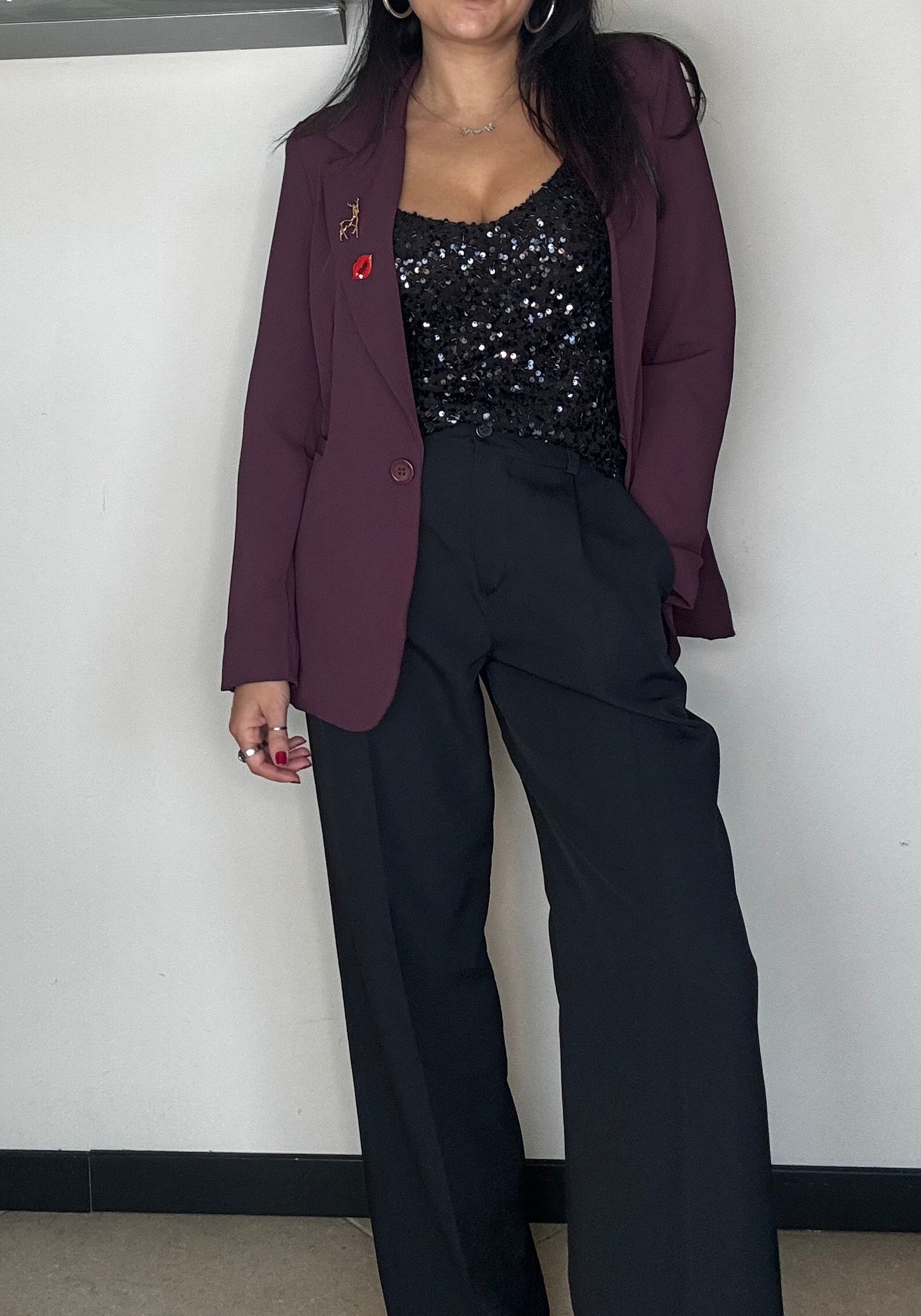 Giacca taglia unica con un bottone , veste fino alla taglia 46.