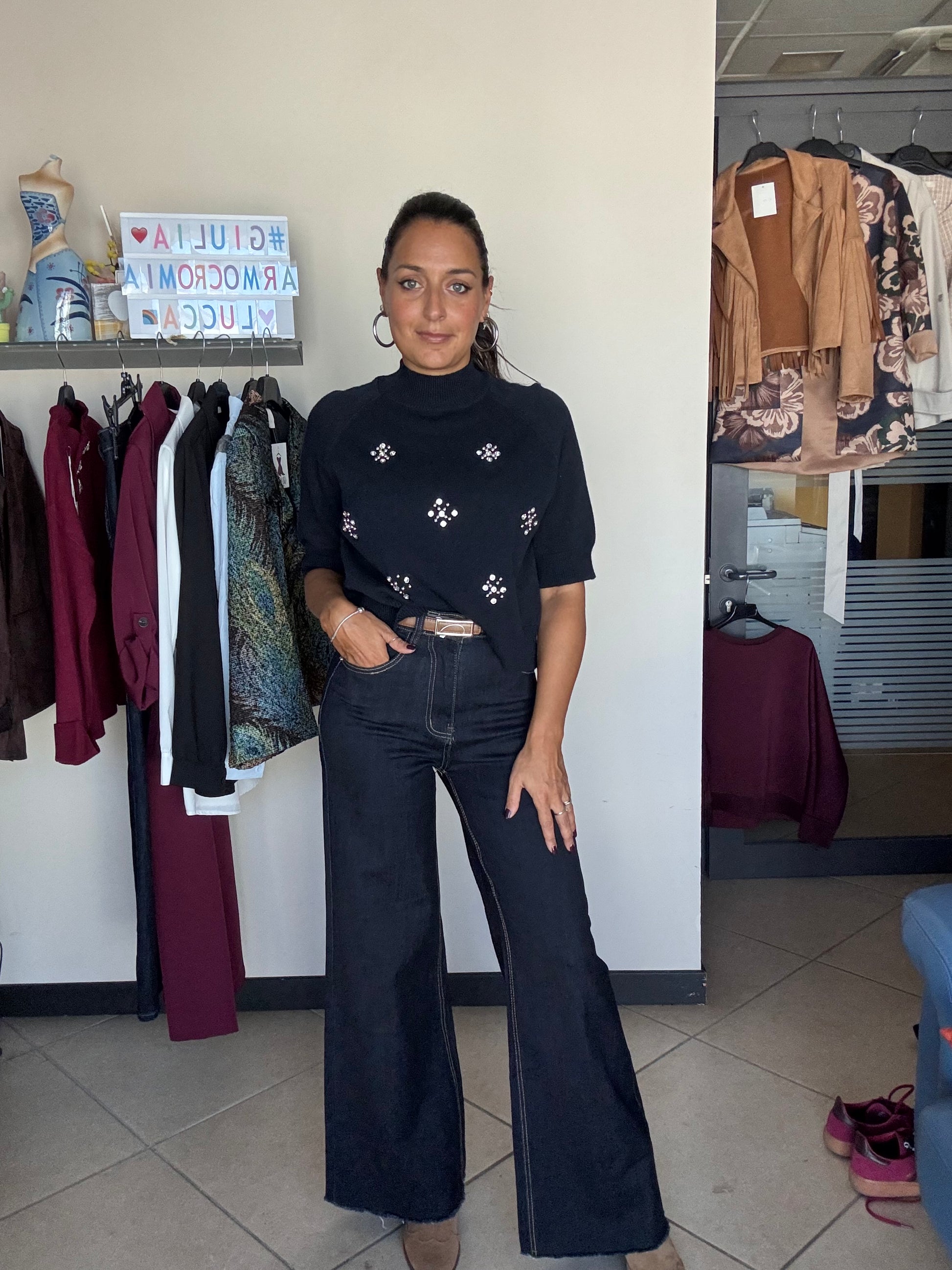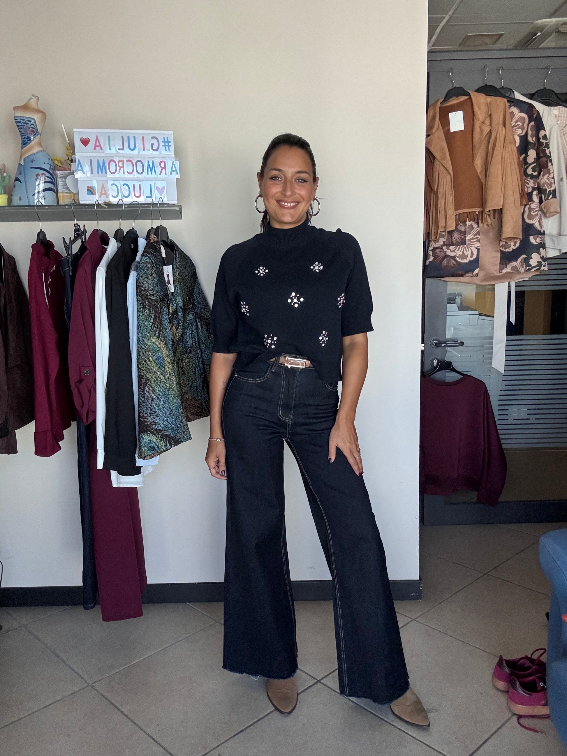 Jeans palazzo sfrangiato