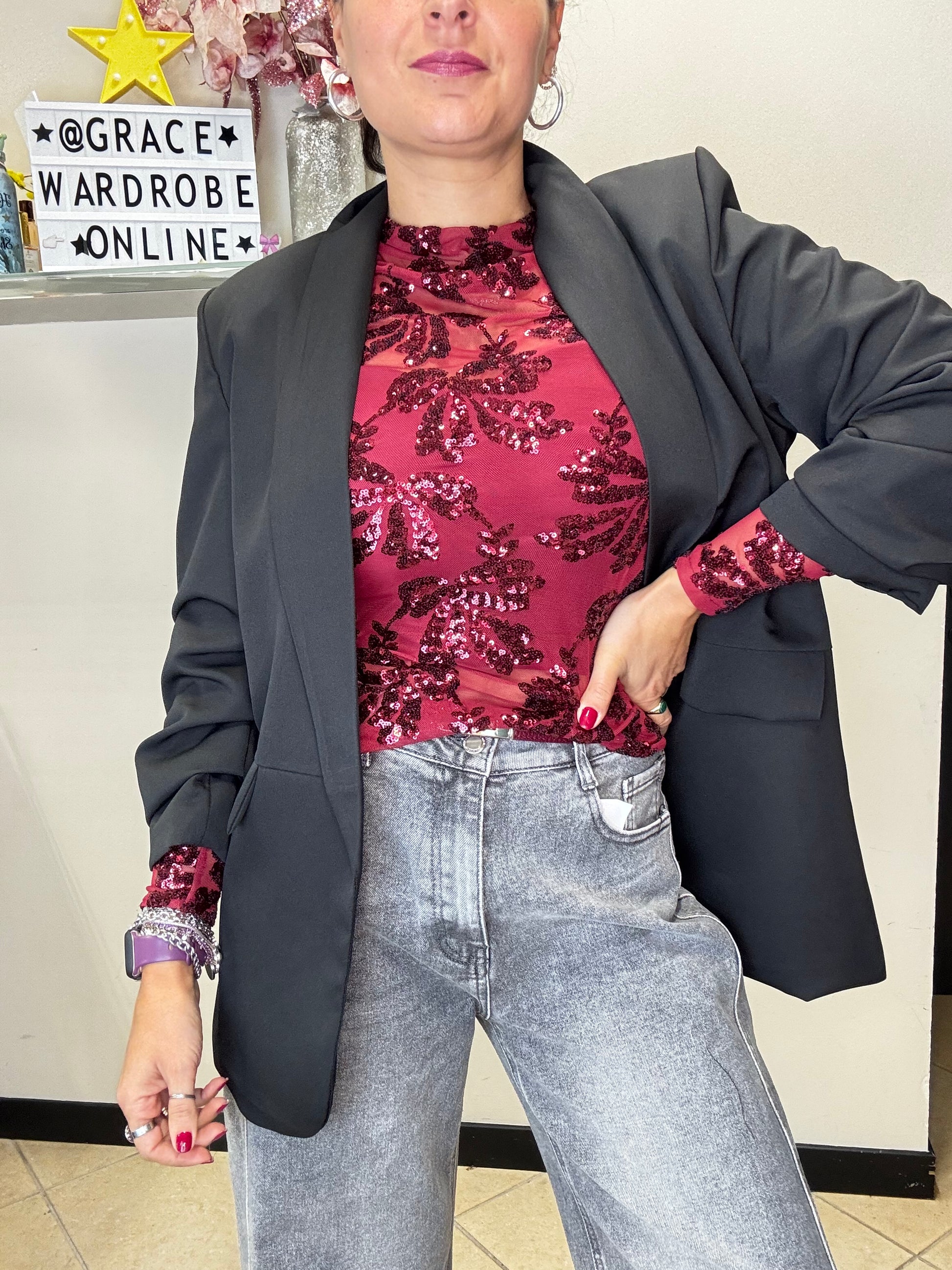 Maglia taglia unica con applicazione di paillettes, taglia unica veste fino alla 44.