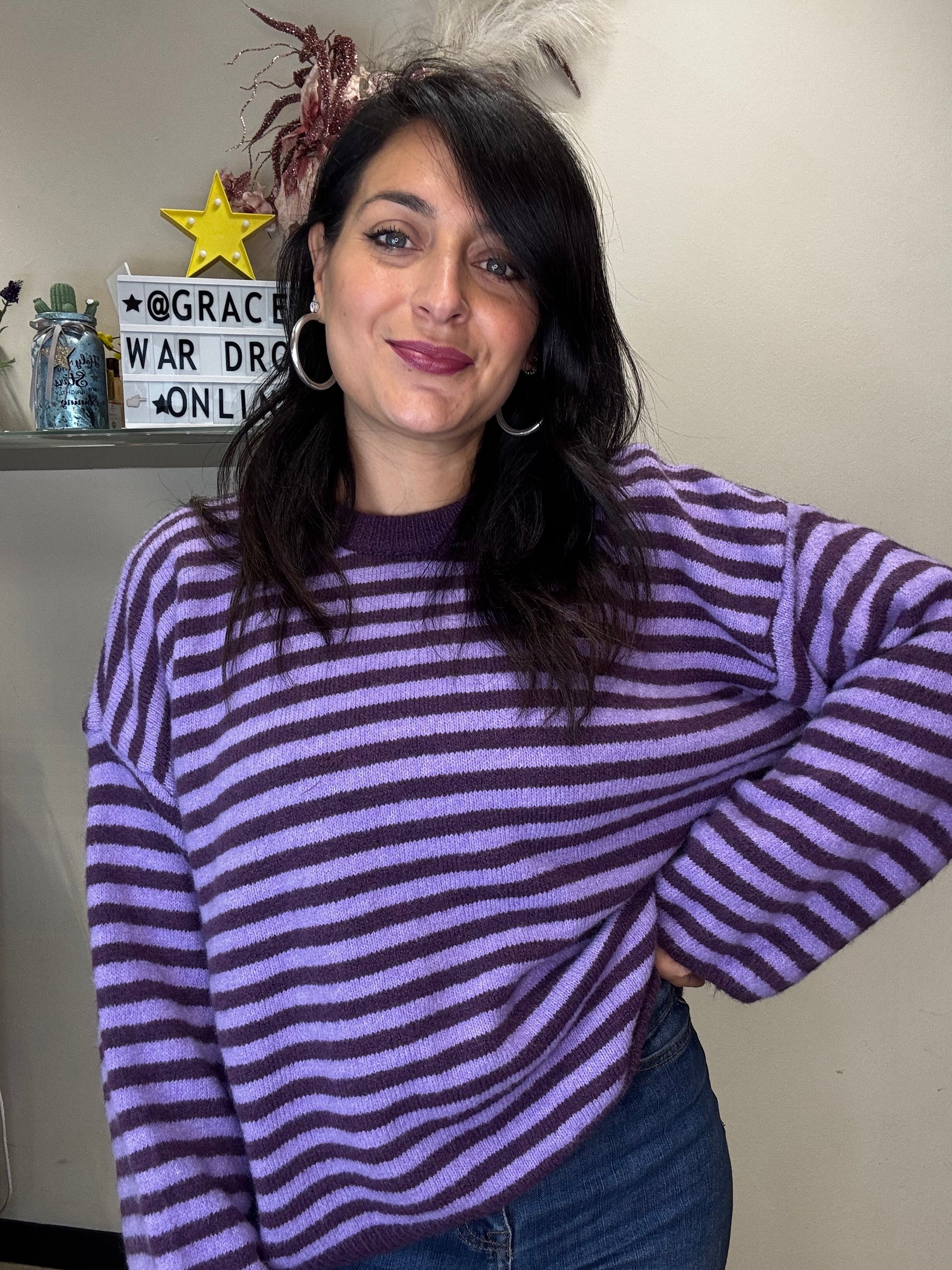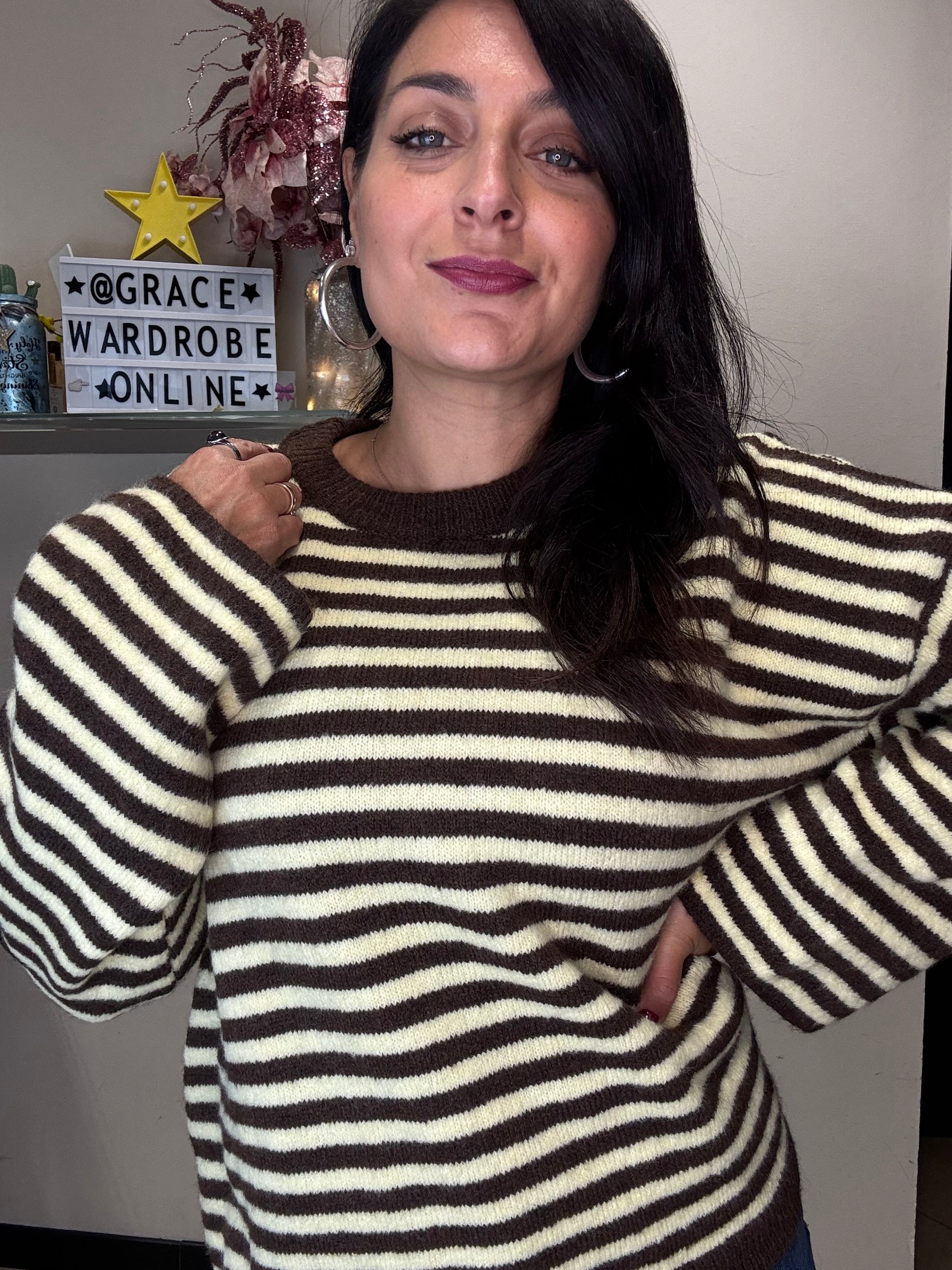 Maglione a righe in viscosa e lana .
