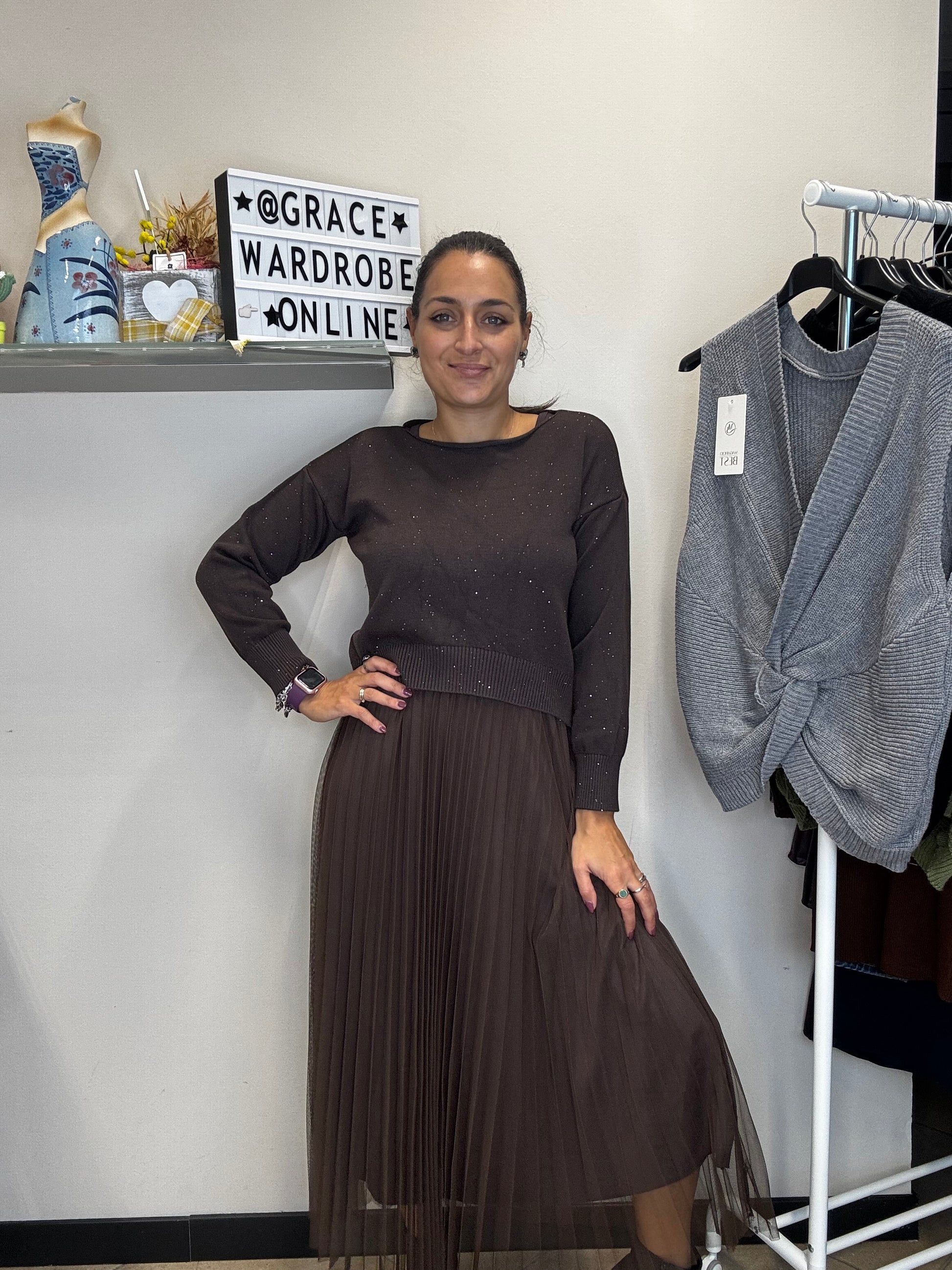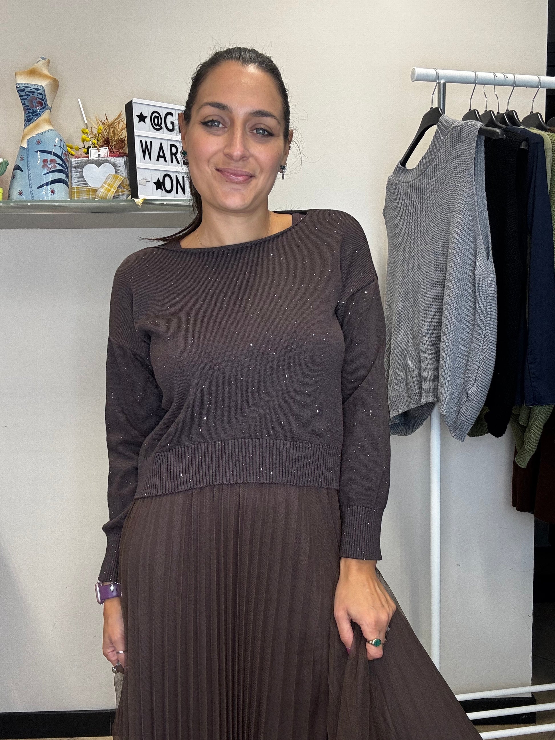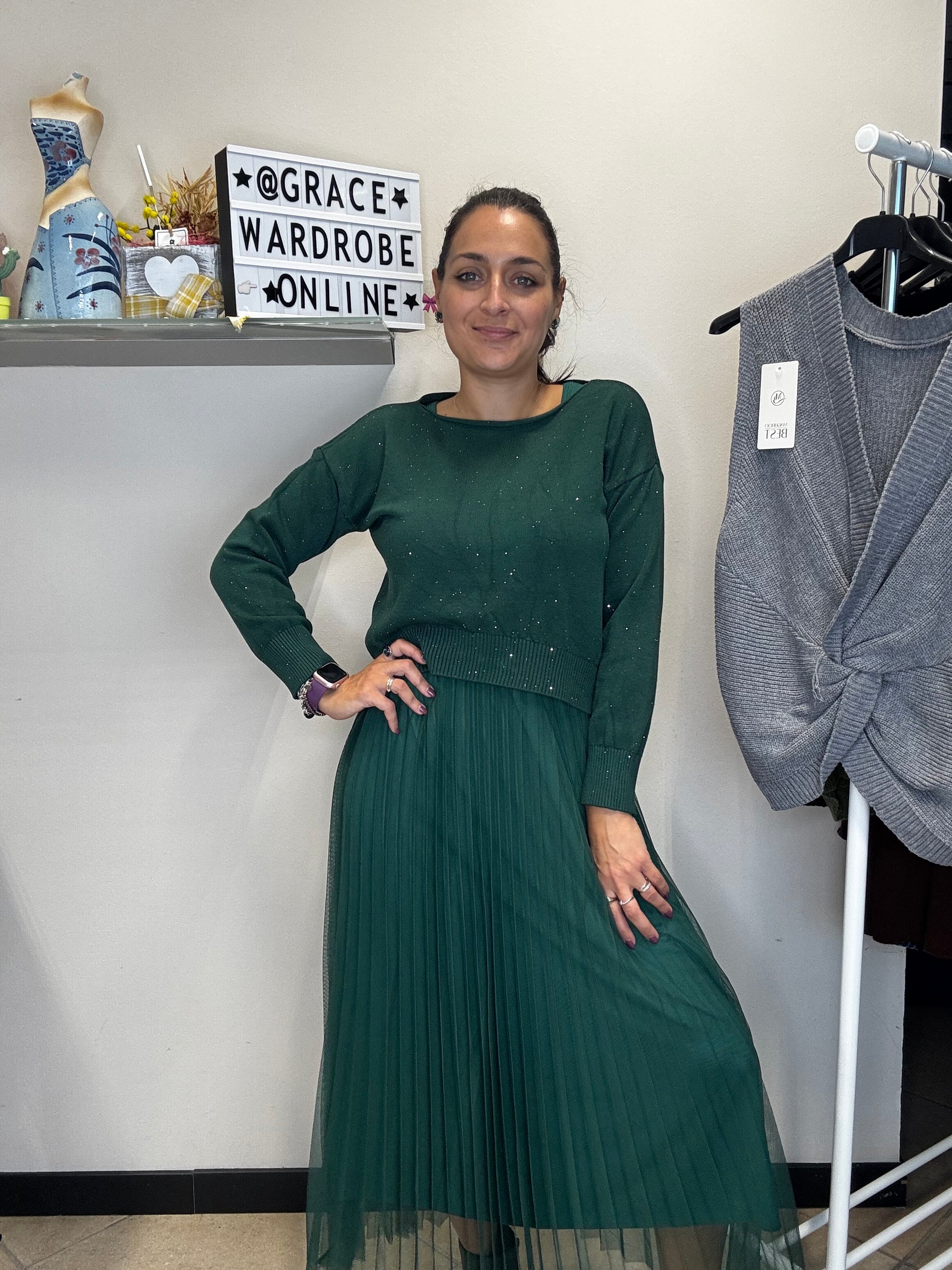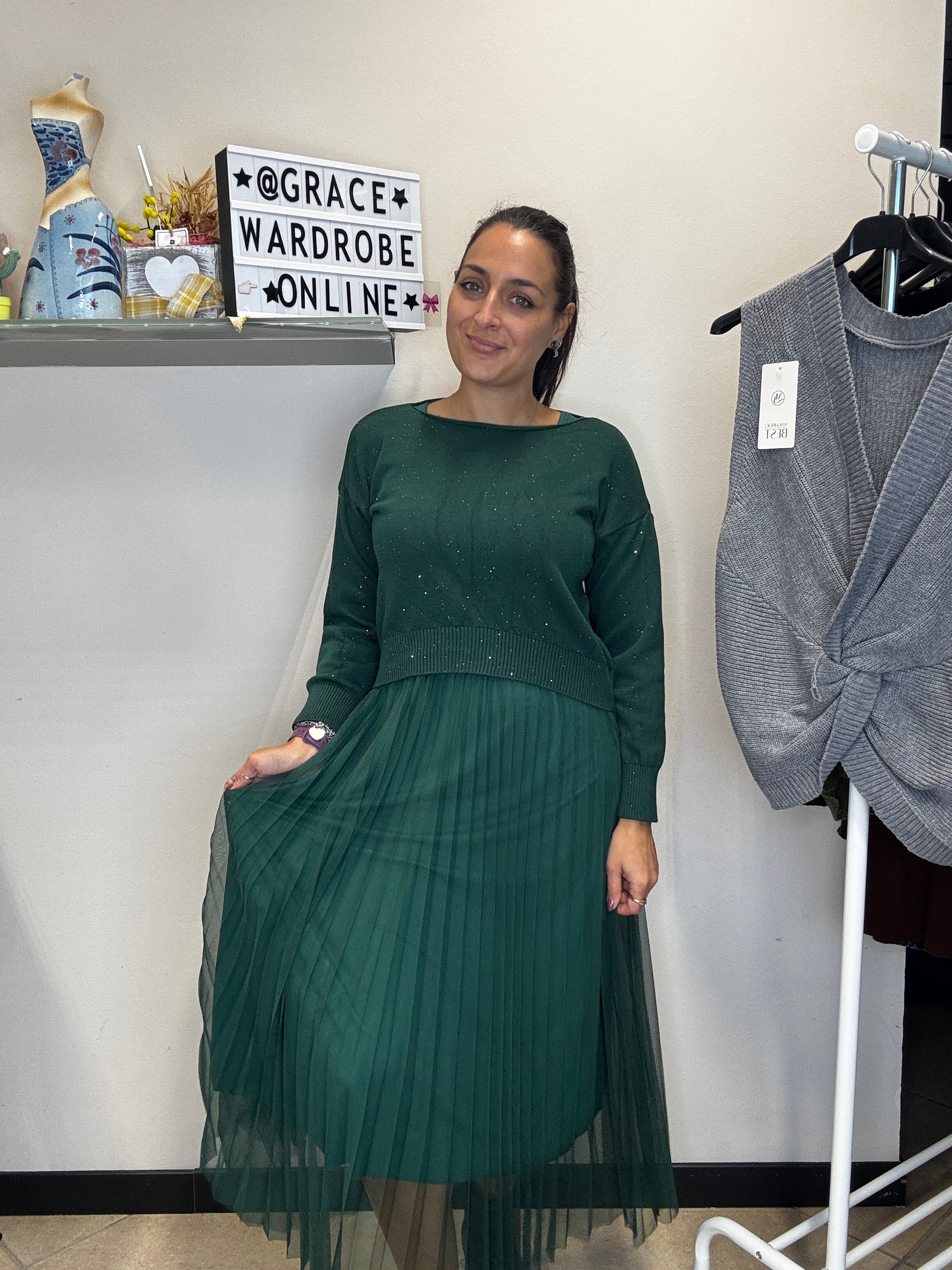 Abito taglia unica composto da due pezzi , abito con canotta e maglia sopra separata .